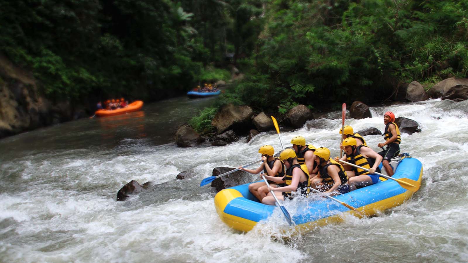 Start your amazing day to experience the most exciting white water rafting at Ayung River as the longest river in Bali. You will be picked up from your hotel to start the journey to Ubud Village where the location of the rafting starting point. There you will meet the professional instructor to brief you before starting the 3 hours white water rafting.